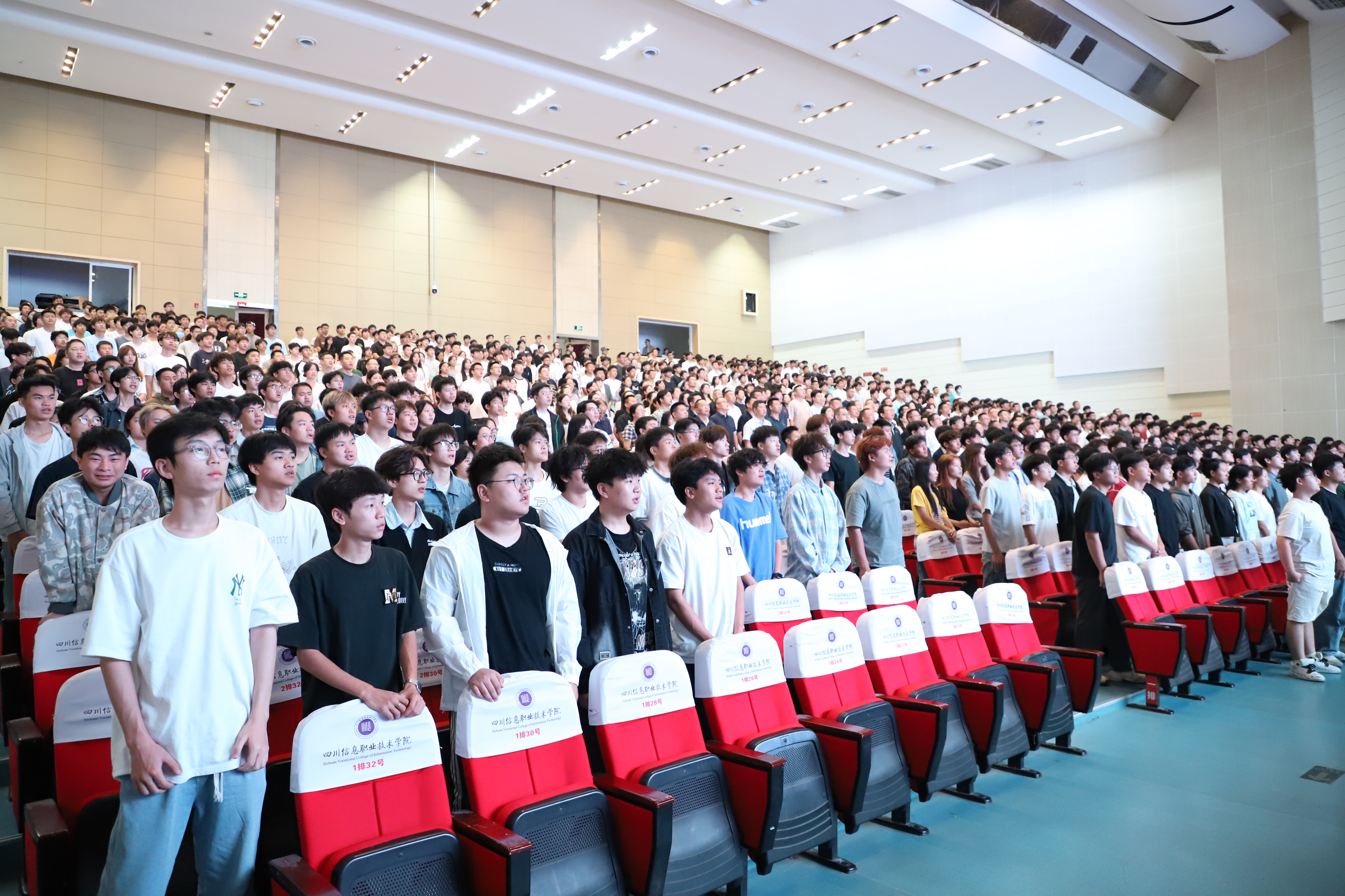 上午9时,大会正式拉开帷幕。随着激昂的《义勇军进行曲》响起,师生们全体肃立,齐声高唱国歌,共同表达对革命先辈的深切缅怀、对伟大祖国的崇高敬仰。习近平总书记的重要讲话引发川信师生强烈共鸣,阅兵仪式上宏大的场景、壮美的画面,让师生们心潮澎湃、热血沸腾。
