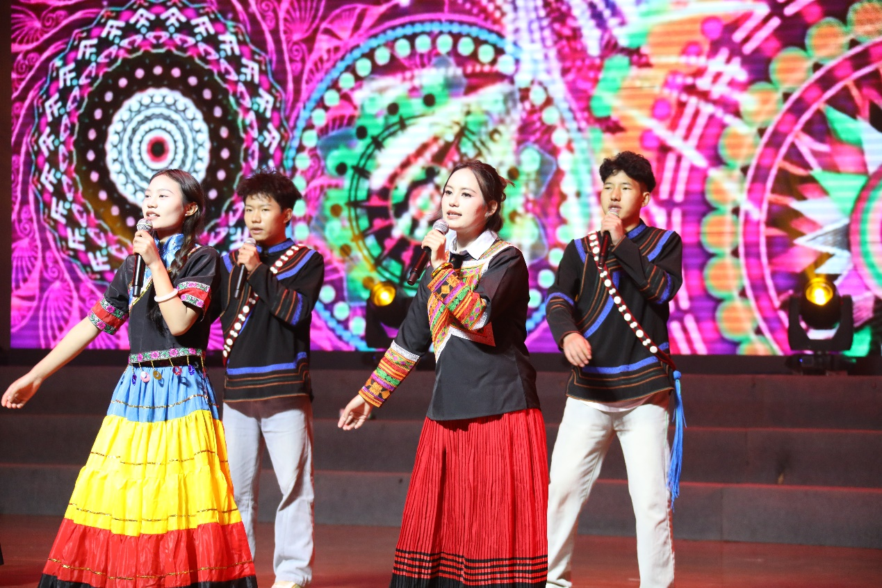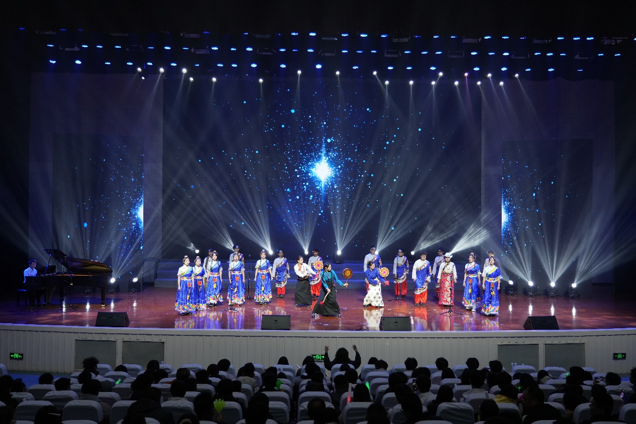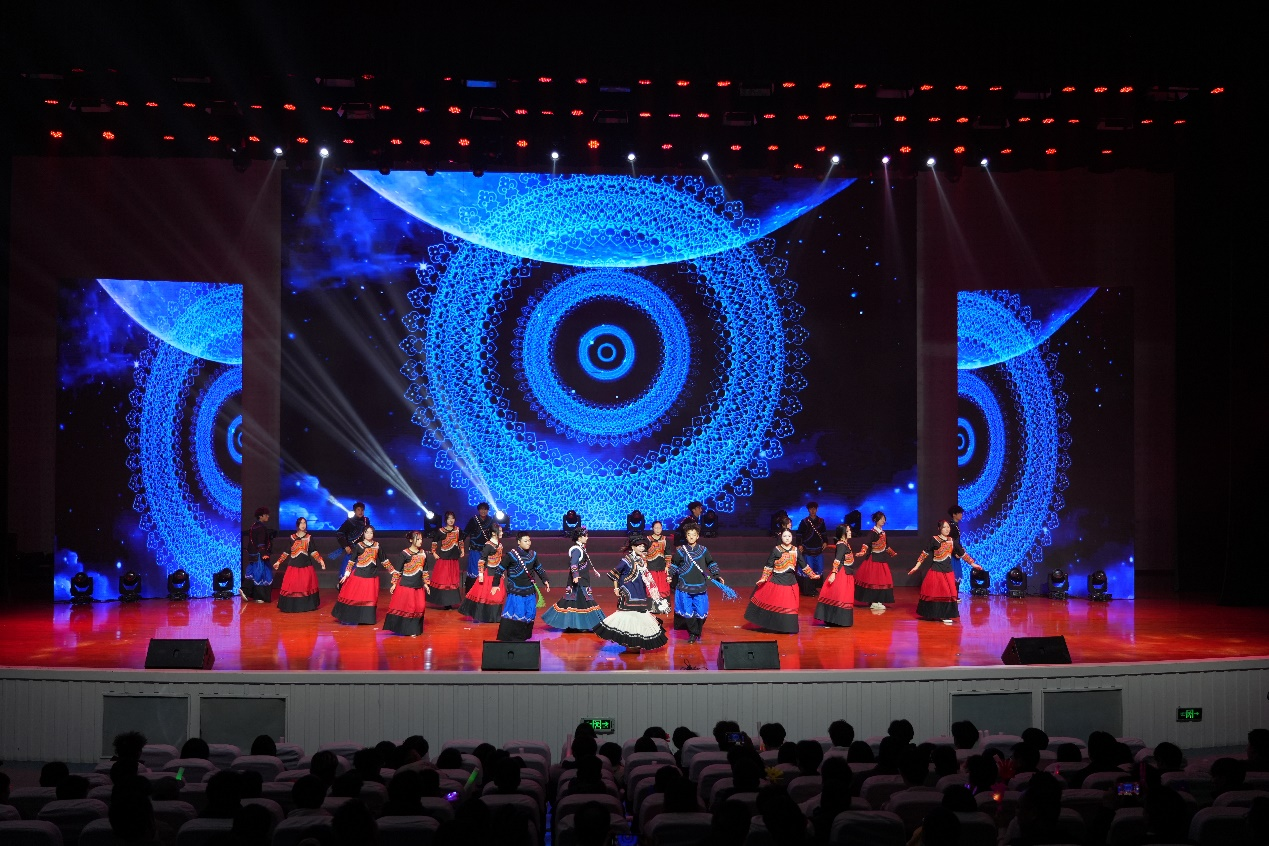 文艺晚会上,各民族同学以及川信之声合唱团分别带来了精彩纷呈的文艺节目,展现了不同民族文化的独特魅力;篝火晚会中,近千名师生手拉手围着篝火尽情舞蹈,喜庆的歌声、熊熊的篝火、轻松的舞步、欢乐的笑声,充分洋溢着“中华民族一家亲 同心共筑中国梦”的浓郁氛围。