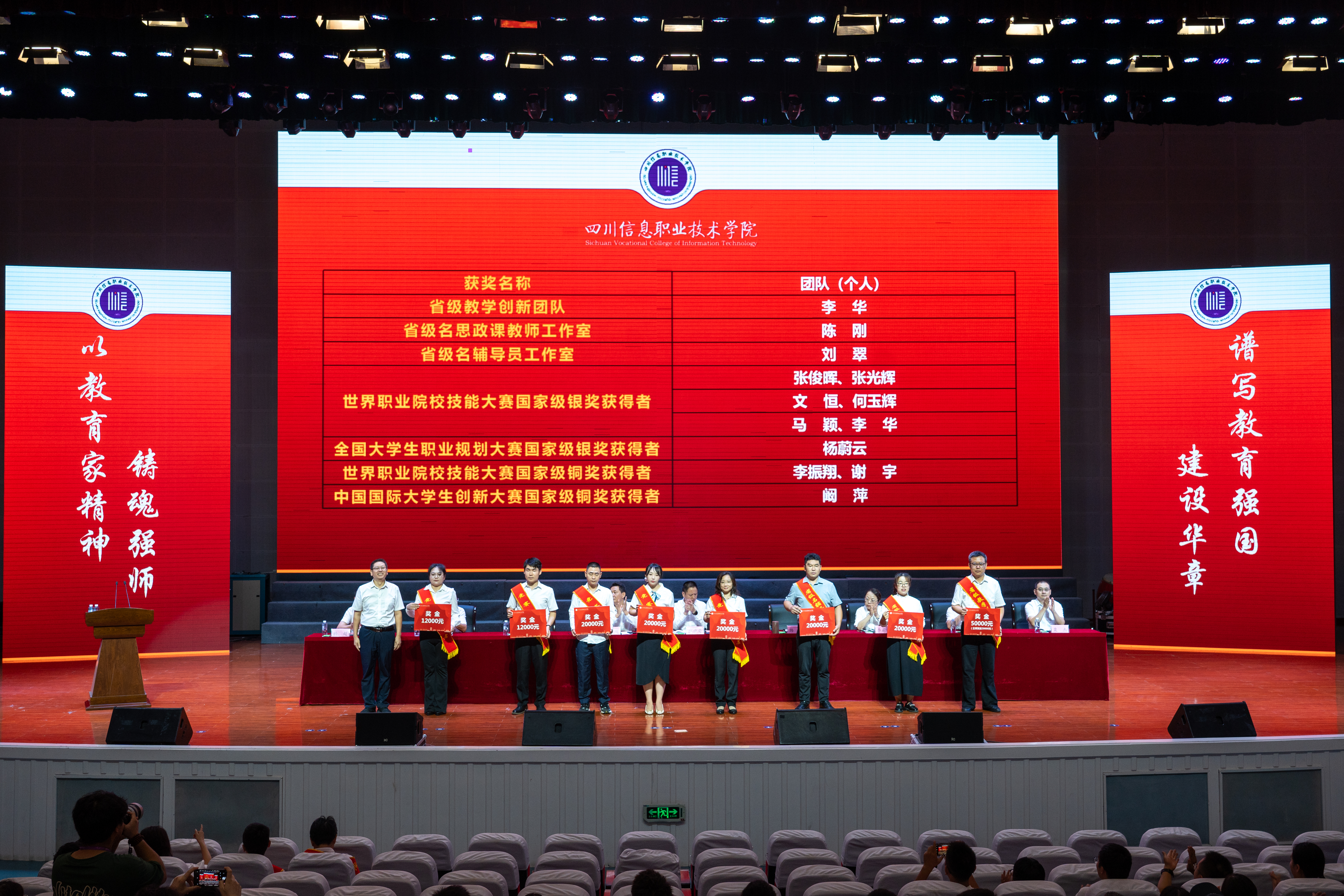 会上,韩鹏宣读了四川省经济和信息化厅教师节慰问信,党委副书记刘凯宣读了2025年教师节表彰文件;与会领导分别为获得2024-2025学年优秀教师、优秀辅导员、管理服务育人先进个人、师德师风先进个人、省级教学创新团队主持人、省级名思政课教师工作室主持人、省级名辅导员工作室主持人、竞赛国家级奖项优秀指导教师、光荣从教三十年教师等荣誉称号的教职员工代表颁发了荣誉证书,优秀教师代表孙红霞分享了教育教学工作中的收获与心得。