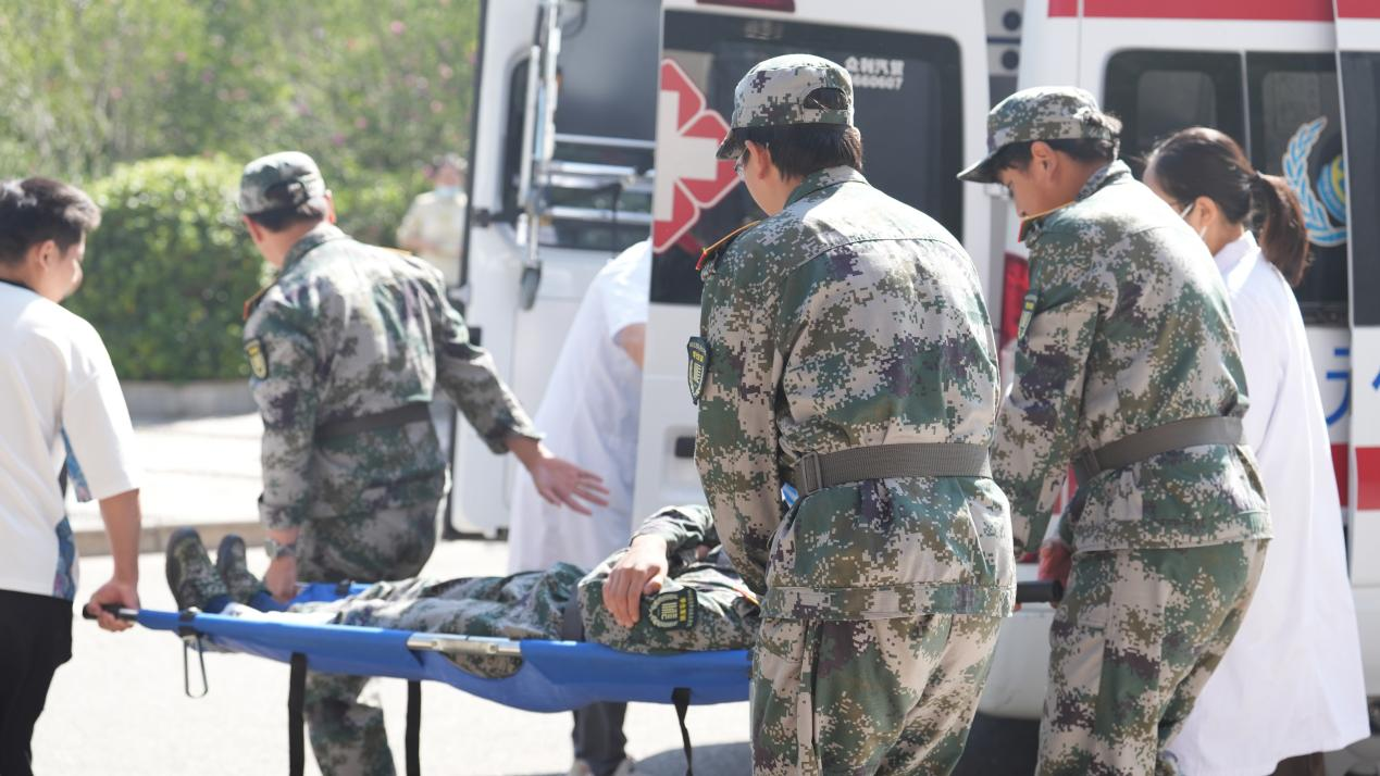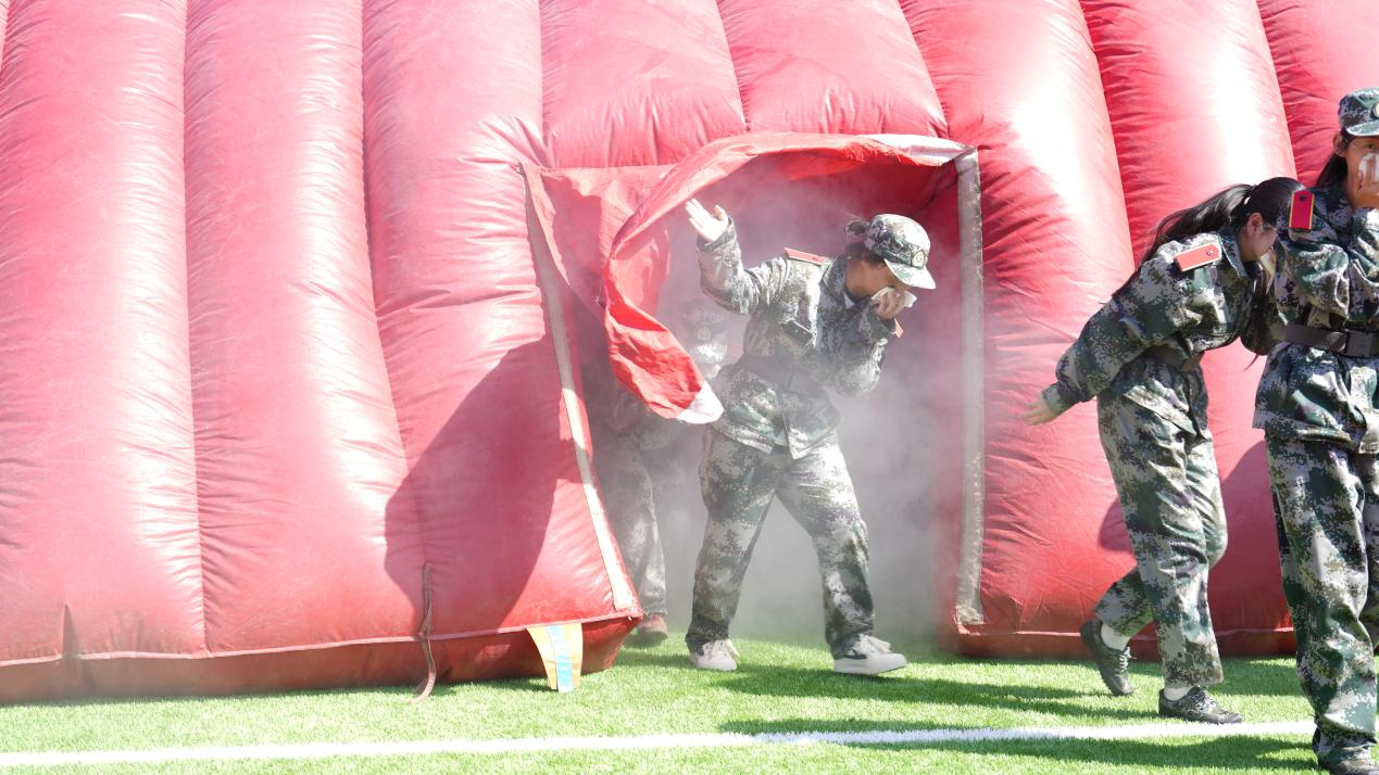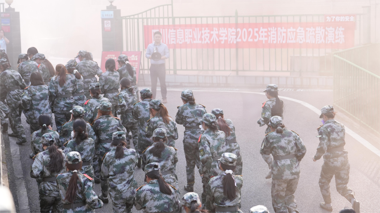 在应急疏散演练中,火情信号发出后,军训教官、辅导员、宿舍管理员、青年志愿者及校卫队员迅速就位,依预案分工协作;全体新生则严格遵循“弯腰低姿、捂鼻护口、靠右有序行进”的疏散准则,沿就近安全通道快速有序疏散至指定安全区域。随后,现场医务人员针对突发伤情进行了处置,安全转运了伤员。