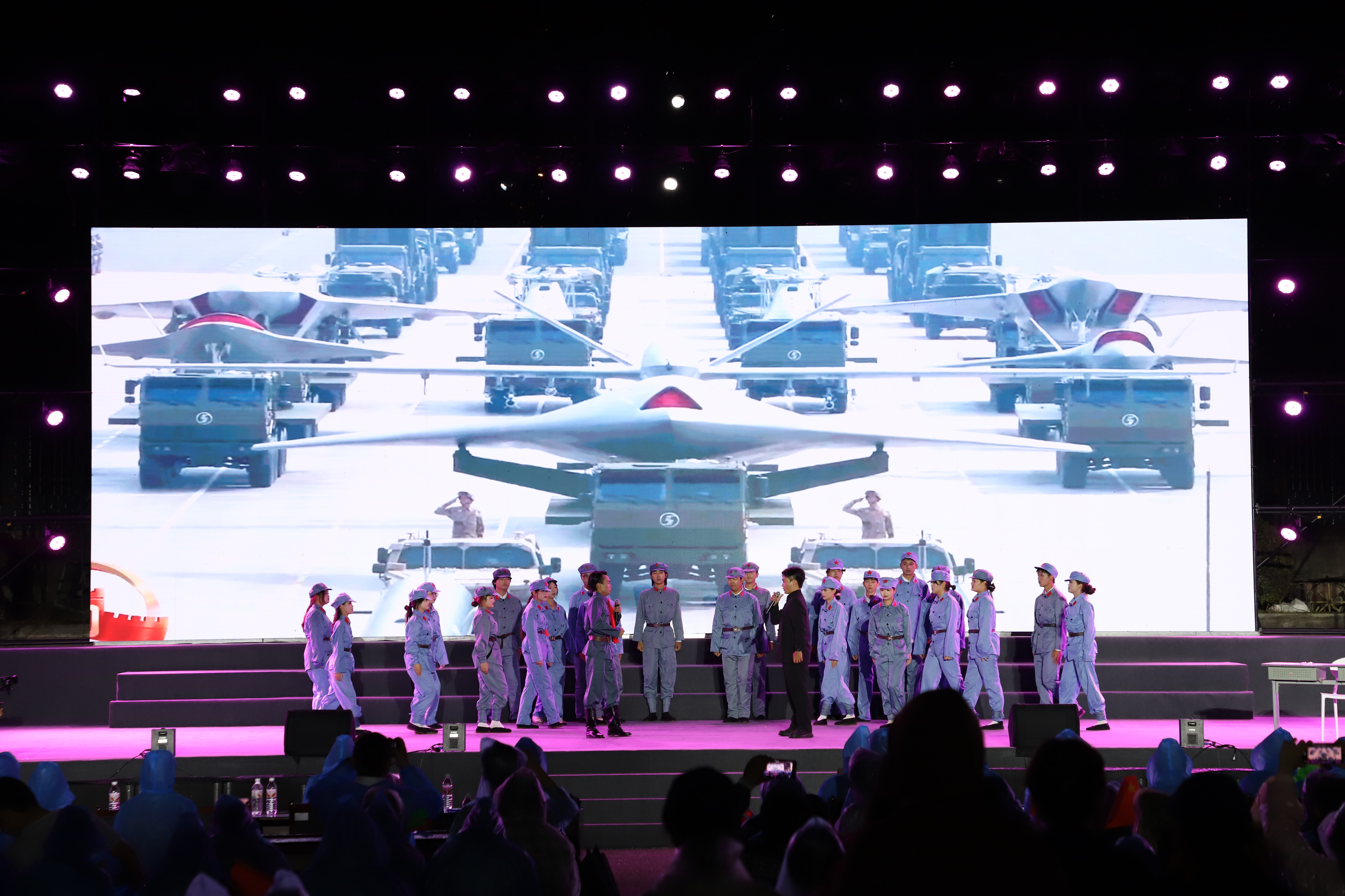 华灯绽放、欢声响彻,秋风送爽、丹桂飘香,9月28日晚,学院《相约川信 筑梦启航》——庆祝中华人民共和国成立76周年暨迎新生文艺晚会在雪峰校区田径场举行。党委副书记刘凯及在家党委领导班子其他成员,中国电信广元分公司党委委员、副总经理张家荀及校园客户中心副总经理何武,学院相关职能部门及各二级学院负责人、教职员工代表、全体2025级新同学和高年级学生代表近5000人参加晚会。