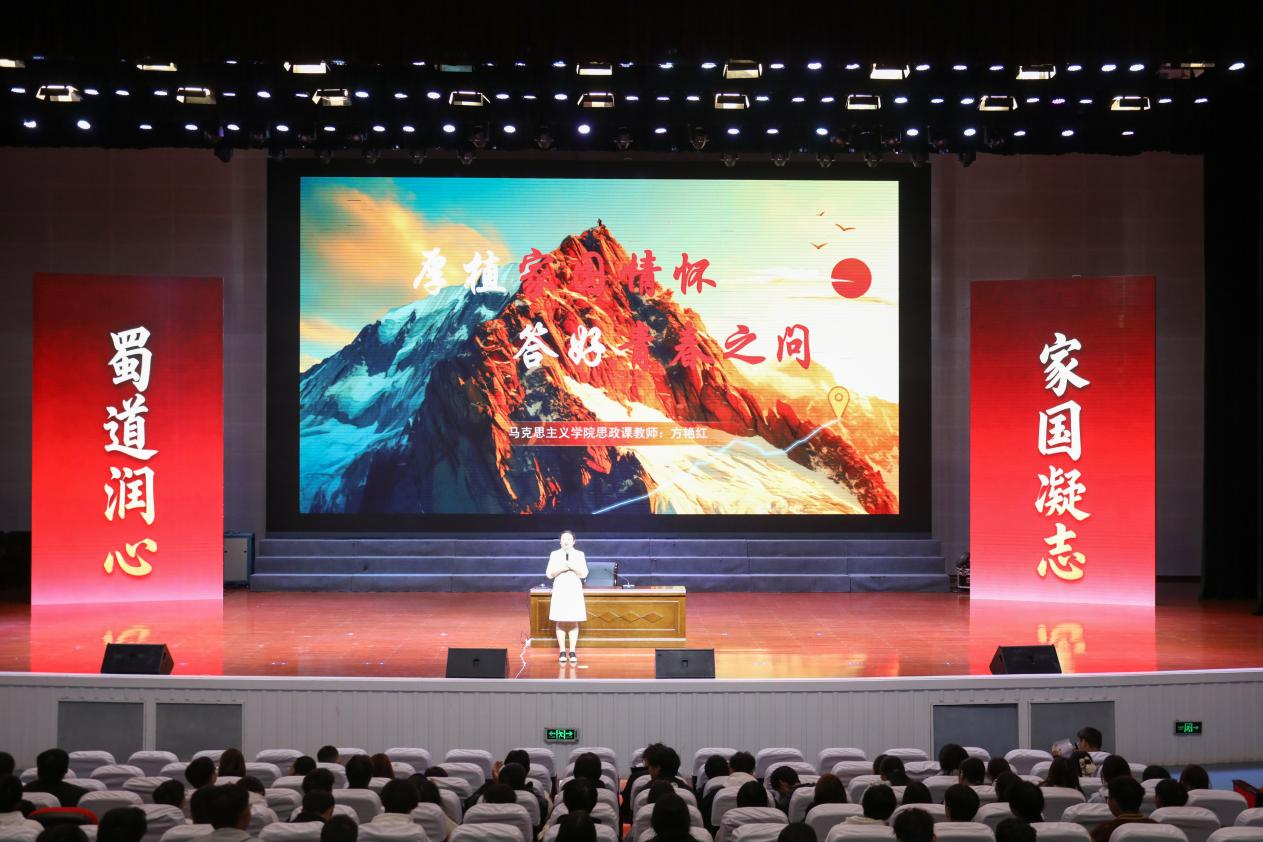 为深入学习贯彻习近平总书记关于弘扬伟大抗战精神、加强历史文化教育的重要论述,推动新时代学校思政课建设高质量发展,10月23日下午,由党委宣传统战部主办、马克思主义学院承办、陈刚名师工作室协办的“同上一堂思政大课”活动在雪峰校区学术交流中心演艺厅举行。本次活动以“蜀道润心、家国凝志”为主题,邀请学院党委书记郑学奇、陕西理工大学教授梁中效、学院形策教研室教师方艳红进行授课,全院600余名师生代表参加活动。